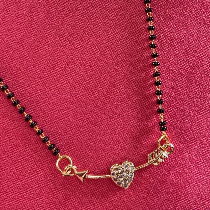 Short Mangalsutra Designs Gold Plated Heart with Arrow Black Beads Chain