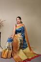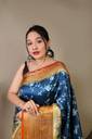 LeeliPeeri Designer Digital Print Kanjivaram Silk Blend Saree with Unstitched Blouse (Blue)