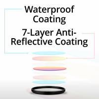 The filter comes with a waterproof and a 7-layer anti-reflective coating so that you can take breathtaking pictures under almost any circumstances.