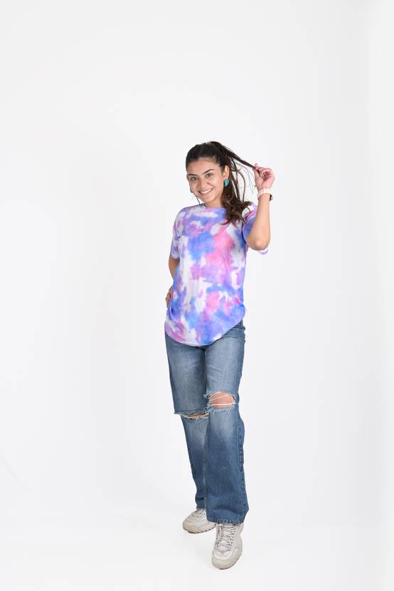 Casual Regular Sleeves Tie & Dye Women Multicolor Top