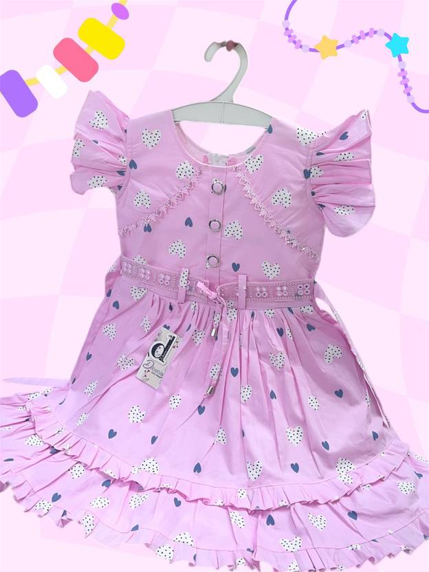 Dilbahar Indi Girls Midi/Knee Length Casual Dress (Pink, Cap Sleeve)