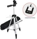 The tripod's three-way head allows for ultimate versatility. Easily change the orientation of the camera from portrait to landscape, Phone bracket is adjustable and lightweight, easy to use and carry with. With standard tripod hole, you can install in any 1/4" tripod stand