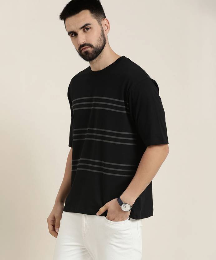 DILLINGER Striped Men Round Neck Black T-Shirt