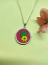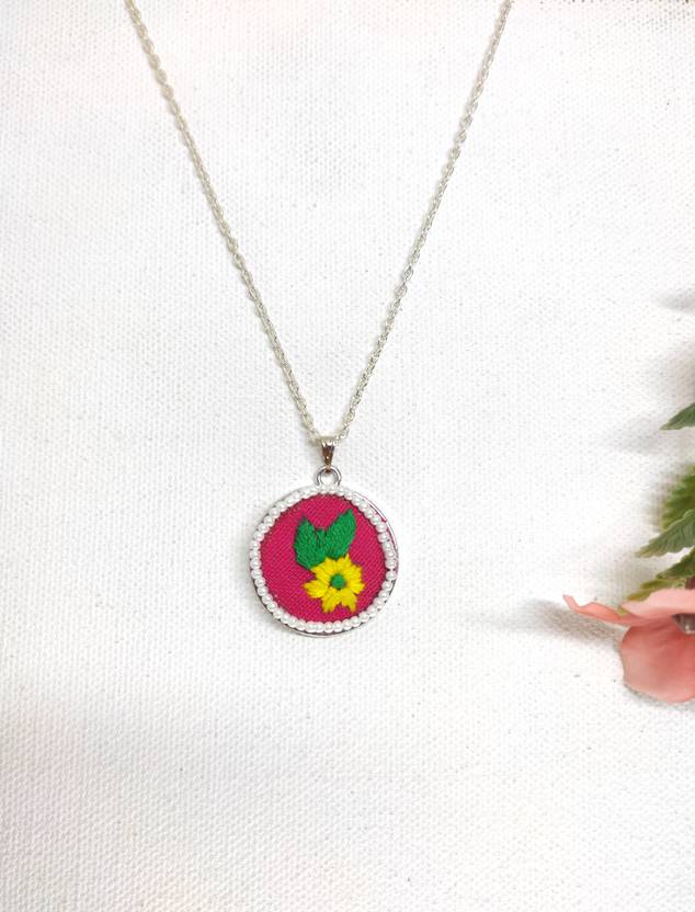 THIS PENDED IS MADE WITH HANDMADE TREAD IN COLORS. RED FABRIC IS ATTRECTIVE IN THIS PENDED. WE USE SILVER CHAIN IN THIS LOCATE .WE ALSO CUSTOMIZED ANY WORK ON THIS LOCAKET We make with love and its totally handcrafted