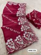 Designer Pure Soft Zimmy Chuu Saree with amazing Sequence and White Thread Work With Running Un-stitched Blouse Piece