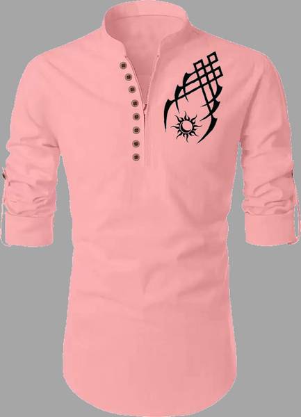 DEEMOON Men Printed Straight Kurta (Pink)