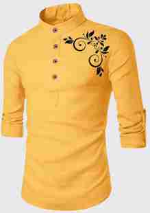 DEEMOON Men Printed Cotton Blend Straight Kurta (Yellow)