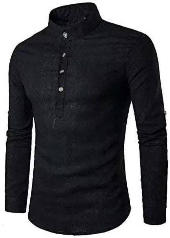 DIMMY Men Solid A-line Kurta (Black)