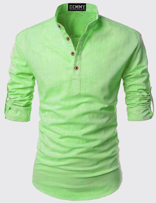 DIMMY Men Solid Casual Light Green Shirt