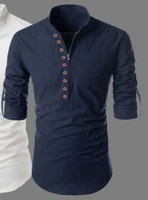 You can experience the flexibility and adaptability of these kurtas' long roll-up sleeves. Ideal for any weather or situation, these sleeves can be worn down for a polished and professional look or rolled up for a more relaxed and casual vibe. And, you can enjoy the convenience of adjusting your sleeve length according to your preference and the changing temperatures throughout the day. The tabs on the sleeves help keep the rolled-up sleeves in place and prevent them from rolling back down.