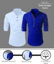 DIMMY Men Solid Straight Kurta (Light Blue, Dark Blue)