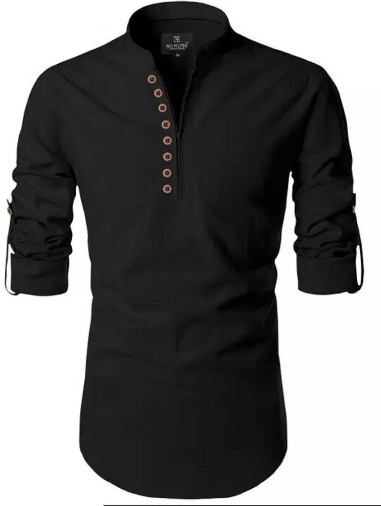 Vertali Industries Men Solid Straight Kurta (Black)
