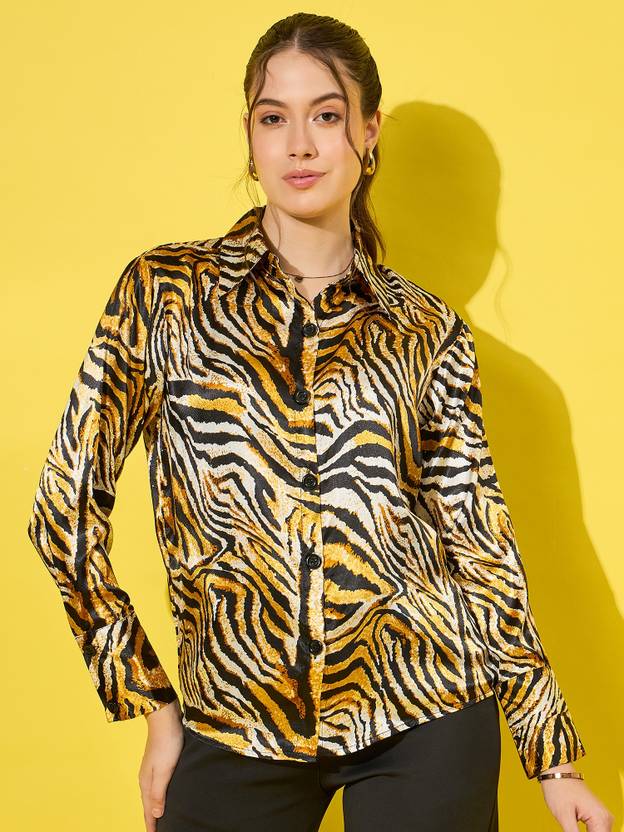 Elevate your casual wardrobe with this Satin Regular Fit Leopard Print Women’s Shirt. Made from soft, lustrous fabric, it offers a comfortable, flattering silhouette. The bold leopard print adds a touch of fierce elegance, making it perfect for day or night. Pair it with jeans or skirts for effortless style. The model (height 5'8) is wearing a size M.