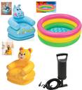 COMBO OF 2 FEET BATH TUB AND 2.5 FEET INFLATABLE HIPPO AND TEDDY CHAIR WITH AIR PUMP
