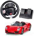 REMOTE CONTROL PORSCHE CAR WITH 1:14 SCALE, STEERING WHEEL, PEDAL CONTROL AND BATTERIES