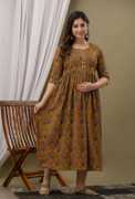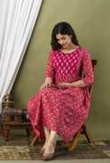 Women Kalamkari Viscose Rayon Anarkali Kurta (Maroon)