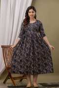 Dinru Women Kalamkari Anarkali Kurta (Maroon)