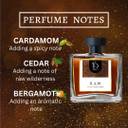 Infused with the warm, spicy essence of cardamom, this perfume adds a touch of exotic charm. The inclusion of cedar brings a raw, woody aroma reminiscent of untamed wilderness, grounding the fragrance with a natural, earthy quality. Meanwhile, the delicate yet invigorating burst of bergamot provides an aromatic citrus note, creating a balanced, layered scent that lingers throughout the day.