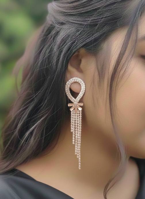 DIPAYAN Rose gold stone long earring Stone Tassel Earring