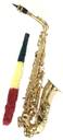Attractive Gold plated finish with rich looking colour. F# Key, Eb pitch, Conical bore, 30 inches, 24 holes, 13 keys, 24 rings, 5 inches bell diameter, with complete body parts, Accessories & Case.