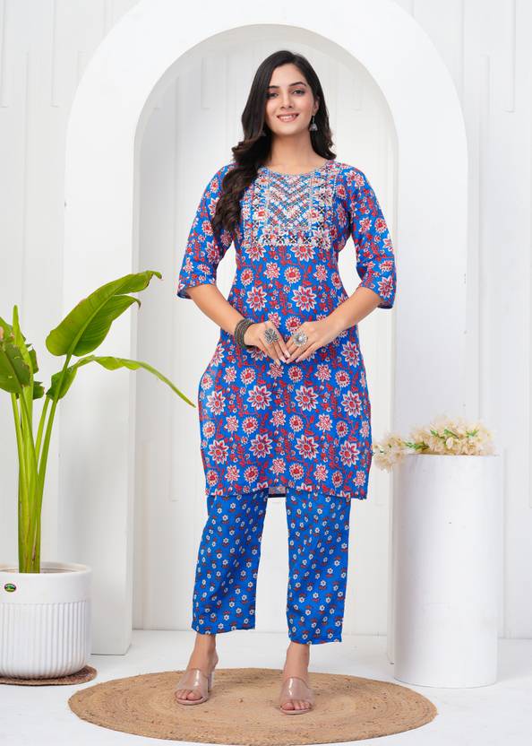 Cotton kurta pant set with beautiful embroidery and comfortable straight-fit pants. Ideal for daily wear.