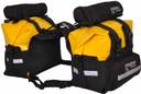 The Waterproof Saddle contains two separation which becomes one .One is the harness and the other dry bag ,all your luggage etc goes in the Dry bag and with a quick fold on top the dry bag sits in the harness and connects with the loops to make it one single waterproof Solution bag