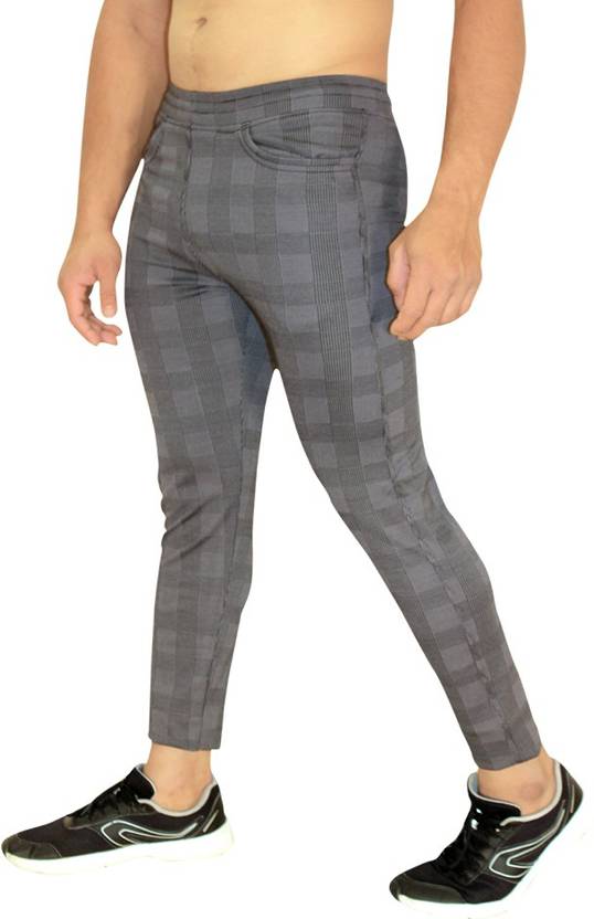 Men Checkered Grey Track Pants