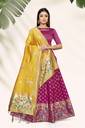 1 Semi stitched lehenga, 1 Unstitched blouse fabric, 1 Banarasi Dupatta