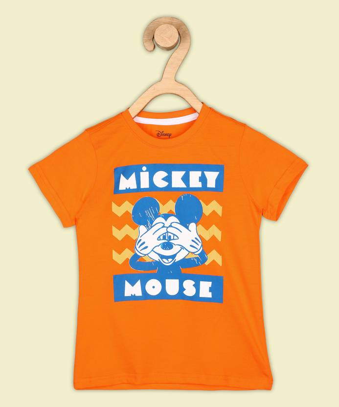 DISNEY Boys Typography, Printed Pure Cotton Regular T Shirt (Orange, Pack of 1)