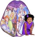 Disney sofia the first 4 panel pop-up tent makes outdoor fun or vacation sweet and special. Designed with Sofia the First princess' designs, it is constructed of sturdy and durable, kid friendly materials and features a side door making entering and exiting a breeze. Ideal for li'l princess to play and take a nap!