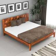 DITHA Furniture Solid Sheesham Wood King Size Bed With CNC Headboard For Bedroom. Solid Wood King Bed (Finish Color - Walnut, Delivery Condition - DIY(Do-It-Yourself))
