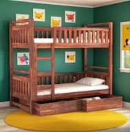 DITHA Solid Sheesham Wood Swift Bunk Bed With Trundle Wooden Bunk Bed With Ladder Solid Wood Single Bed, 99.06 cm x 208.28 cm (3.25 ft x 6.83 ft) (Finish Color - Walnut 1, Delivery Condition - DIY(Do-It-Yourself))