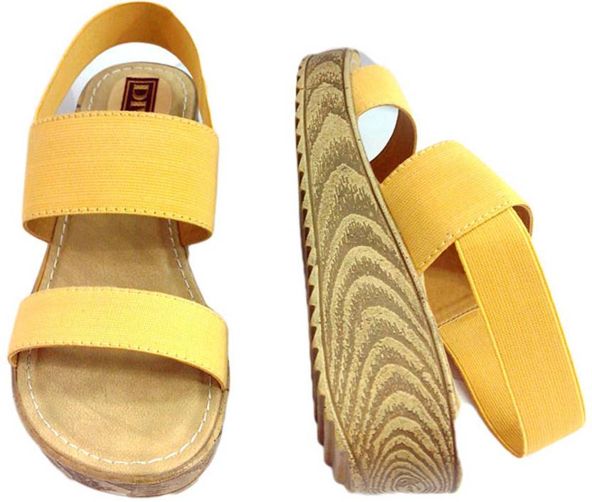 Women Pu Sole Medium Platform Wedges Sandal (Yellow , 10 UK/India)