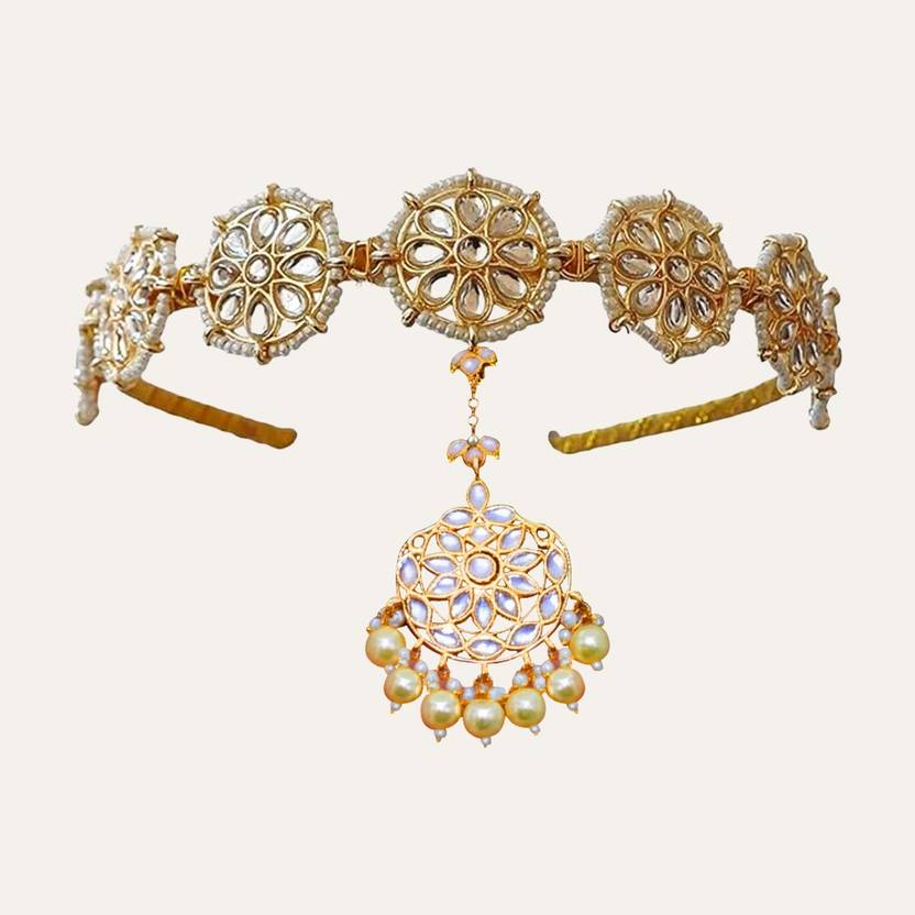 Maang Tikka, Kundan Hairband with Maang Tikka Set for Women & Girls | Ethnic Indian Bridal & Wedding Hair Accessory | Traditional Head Jewelry for Saree, Lehenga, Festive Occasions | Anti-Allergic