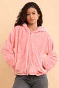 Brighten up your winter wardrobe with this super cute and cozy pink teddy fleece hoodie for women. Made from ultra-soft faux fur material, this zip-up jacket is designed to keep you warm while adding a playful pop of color to your everyday look. The hood features charming bear ears, giving it an adorable twist that’s perfect for those who love fun, comfy fashion with a touch of personality.