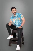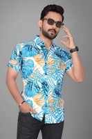 DivaNX Men Floral Print Beach Wear Blue Shirt