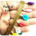 DIVARA Shell, Cowrie Latkan for Dresses (4Mtr) Kouri Lace for Duppta, Saree, Sewing, Art & Crafts DIY, Curtains Decor Lace Reel (Pack of 1)