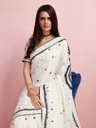 This geometric printed embroidered saree, crafted from a luxurious silk blend. The intricate geometric prints add a modern flair to the ensemble, While the delicate embroidery elevates its elegance. Adorned with charming tassels, This saree exudes a playful yet refined charm. perfect for both formal occasions and festive celebrations, It effortlessly combines contemporary style with traditional craftsmanship. Step into the spotlight with confidence and grace, As this exquisite saree promises to make a statement wherever you go. Flaunt your impeccable taste and atyle with this stunning creation, Tailored for the modern woman who appreciates timeless beauty with a contemporary twist.