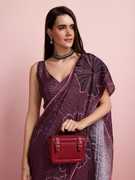 Digital Geomitric Printed Embroidered Saree With Unstitched Blouse Piece