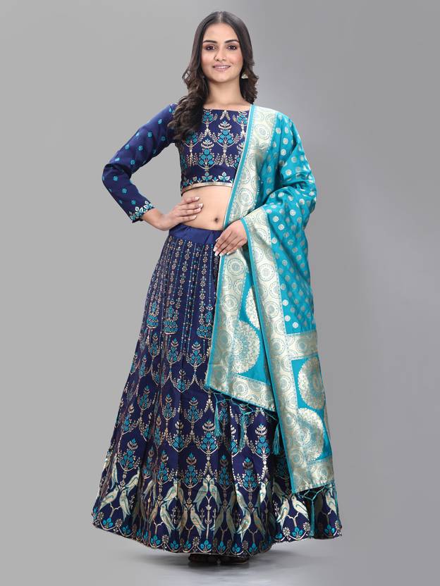 Divastri Embroidered Semi Stitched Lehenga Choli (Light Blue, Dark Blue)