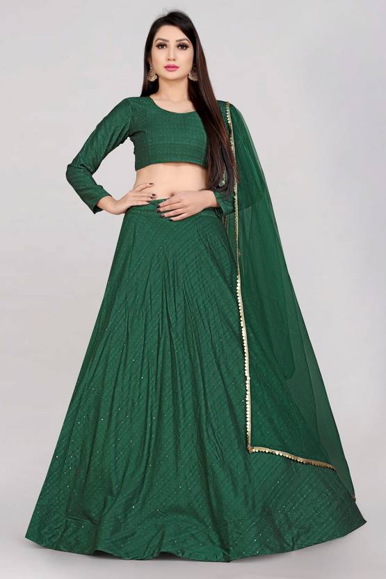 Divastri Embroidered Semi Stitched Lehenga Choli (Dark Green)