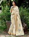 Khadi Cotton Floral Printed, Zari Border & Tassels Cream color Saree With Blouse