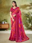 Explore The Collection Of Beautifully Designed Saree. Saree Color: Purple | Blouse Color : Purple || Saree Work: Graphic Print | Blouse Work: Woven || Saree Fabric: Chiffon | Blouse Fabric: Silk Blend|| These Saree Are Perfect For Occasions And Events Anytime Of The Day Or Night.