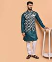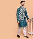 Men Cotton Blend Kurta Pyjama Ethnic Jacket Set