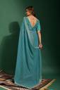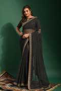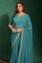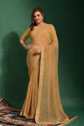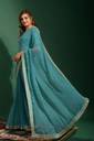 This elegant saree is crafted from soft georgette chiffon featuring beautiful Bandhani prints combined with intricate embroidery work on the lace. The saree measures 5.50 meters in length, offering a graceful drape. It is paired with an unstitched blouse piece made from Banglori satin, adorned with all-over work, and measuring 0.80 meters. This combination of printed georgette and embellished satin provides a perfect blend of traditional charm and modern sophistication, making it ideal for special occasions.