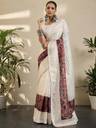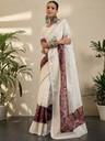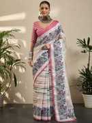 Divastri Printed Kota Doria Jute Silk Saree  (White)