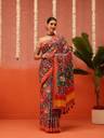 Pair this saree with minimal jewelry for a graceful day look or accessorize with statement pieces for a festive appearance.