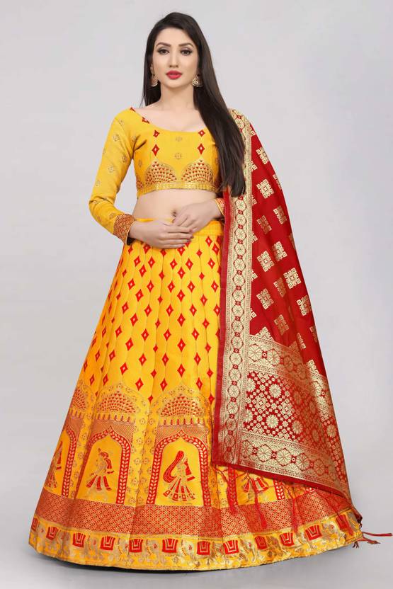 Divastri Self Design Semi Stitched Lehenga Choli (Yellow, Red)
