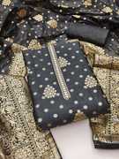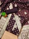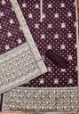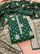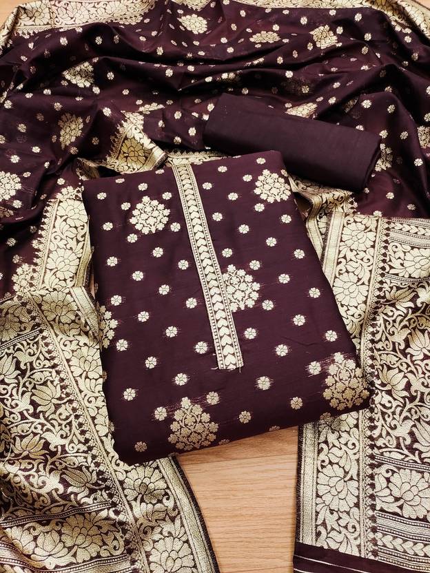 Banarasi silk unstitched dress material embodies timeless elegance and cultural richness. This luxurious fabric is renowned for its intricate brocade weaving and opulent silk texture, originating from the ancient city of Varanasi (Banaras). The unstitched format allows for personalized customization, making it ideal for creating traditional Indian garments like salwar kameez, lehengas, or sarees. Adorned with elaborate motifs and patterns inspired by Mughal art and Persian designs, Banarasi silk exudes grandeur and sophistication, perfect for weddings, festivals, and celebratory occasions. Its shimmering allure and exquisite craftsmanship make it a prized choice among discerning fashion enthusiasts seeking to make a statement with their attire.