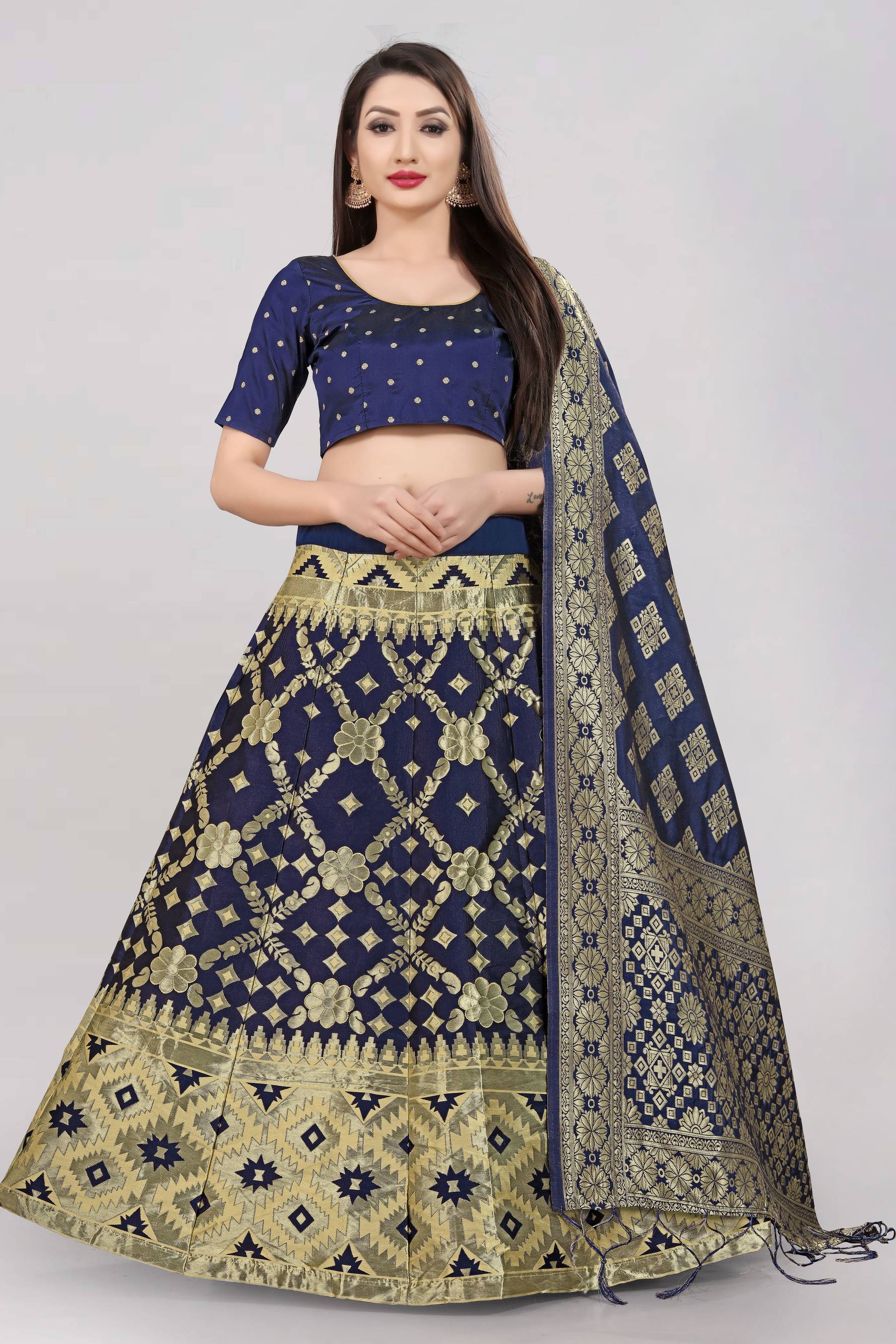 1 Semi stitched lehenga,1 Unstitched blouse fabric, 1 Net Dupatta